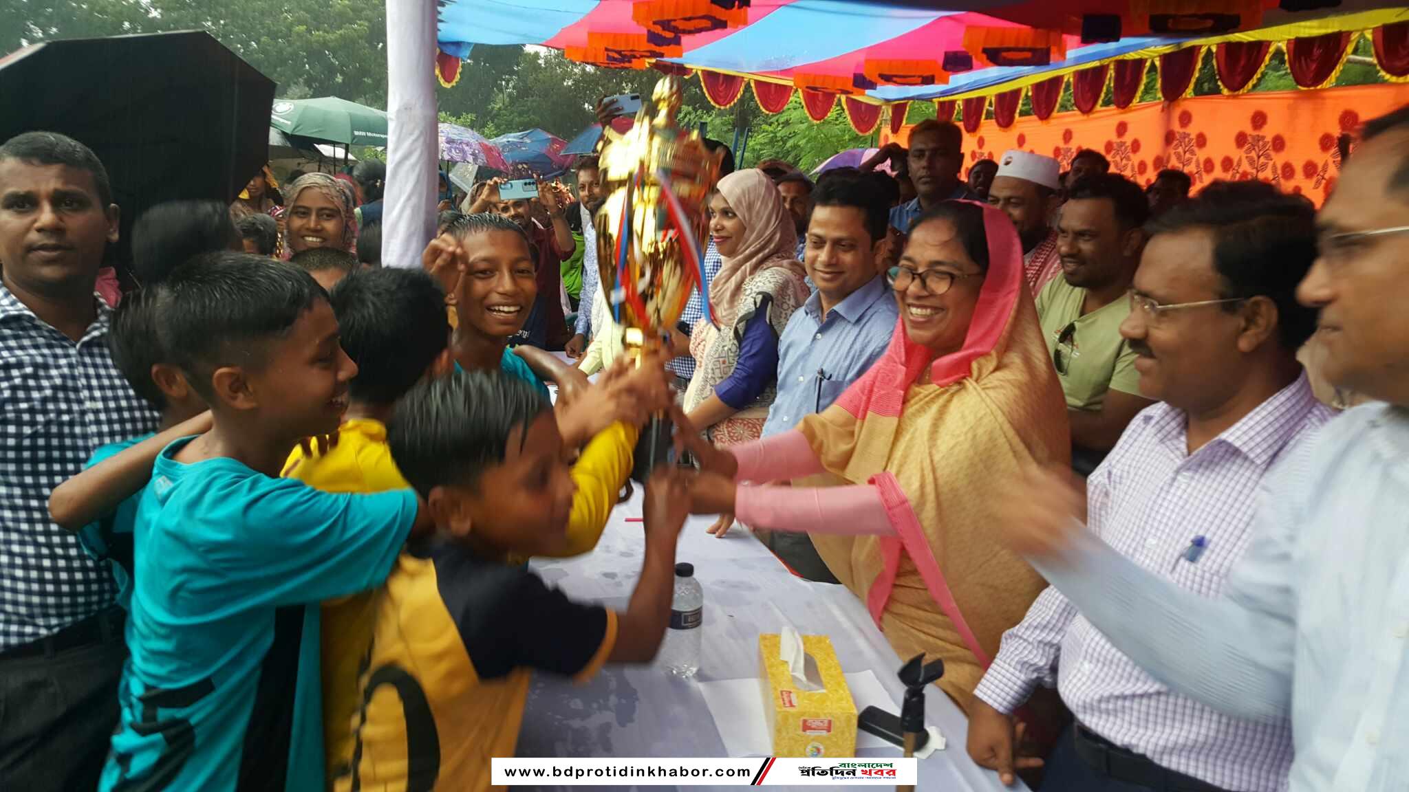বেলুন উড়িয়ে এ প্রতিযোগীতার উদ্বোধন এবং খেলা শেষে বিজয়ীদের মাঝে পুরস্কার বিতরণ করেন প্রধান অতিথি জেলা প্রশাসক মোহাম্মদ আশফাকুল হক চৌধুরী।