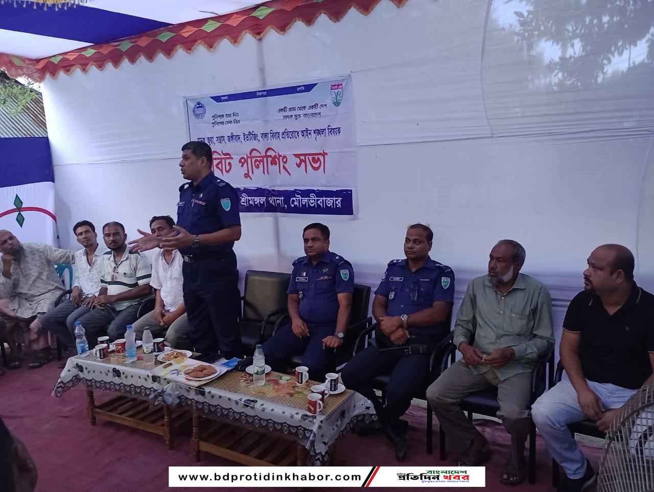 মৌলভীবাজারের শ্রীমঙ্গল থানা পুলিশের আয়োজনে আইনশৃঙ্খলা বিষয়ক বিট পুলিশিং সভা অনুষ্টিত হয়েছে।সোমবার (১৮ সেপ্টেম্বর) শ্রীমঙ্গল উপজেলার ৩নং সদর ইউনিয়ন পরিষদের আয়োজনে বিষামনি এলাকায় সারদীয় দূর্গাপুজায় আইনশৃঙ্খলা নিয়ন্ত্রণে রাখতে বিট পুলিশিং সভা অনুষ্টিত হয়েছে। সভায় প্রধান অতিথি হিসেবে উপস্থিত ছিলেন শ্রীমঙ্গল থানার অফিসার ইনচার্জ জাহাঙ্গীর হোসেন সরদার।