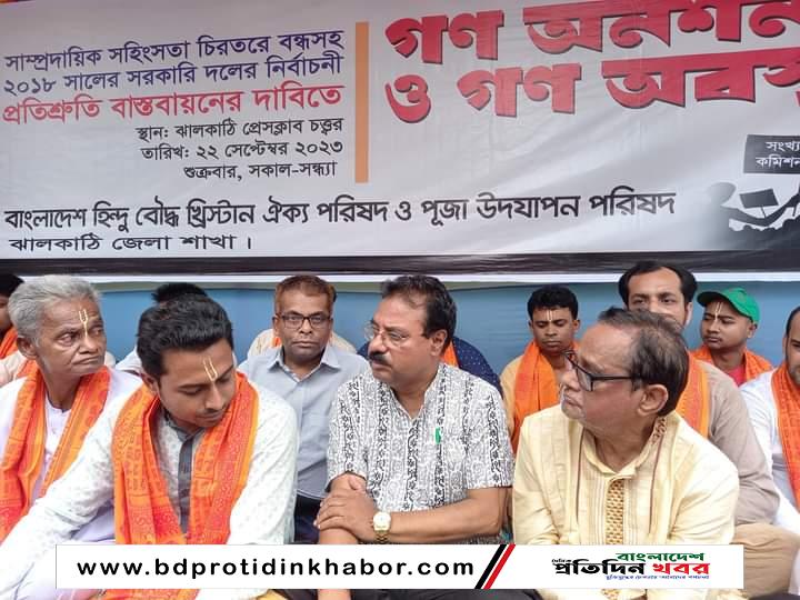 ঝালকাঠিতে হিন্দু বৌদ্ধ খ্রিস্টান ঐক্য পরিষদের গণঅনশন অনুষ্ঠিত
