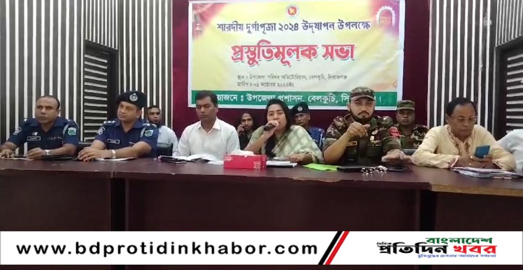 মঙ্গলবার সকালে ১লা অক্টোবর বেলকুচি উপজেলা অডিটোরিয়ামে বেলকুচি উপজেলা নির্বাহী অফিসার আফিয়া সুলতানা কেয়ার সভাপতিত্বে প্রকল্প বাস্তবায়ন কর্মকর্তা হেলাল উদ্দিন এর সঞ্চালনায় বক্তব্য রাখেন বেলকুচি উপজেলা দায়িত্বপ্রাপ্ত ক্যাম কমান্ডার মেজর তবিবুর রহমান, বেলকুচি থানা সার্কেল অফিসার রাফিউর রহমান, বেলকুচি সহকারী কমিশনার ভূমি প্রতীক মন্ডল, বেলকুচি থানা অফিসার ইনচার্জ জাকেরিয়া হোসেন, তদন্ত ওসি আব্দুল বারিক, পূজা উদযাপন কমিটির বেলকুচি শাখার সভাপতি বৈদ্যনাথ রায়, বেলকুচি শাখার সাধারণ সম্পাদক অমৃত নারায়ন দে, বাংলাদেশ হিন্দু বৈদ্য খৃষ্টান ঐক্য পরিষদের সভাপতি জয়শঙ্কর শাহ, বেলকুচি উপজেলা বিএনপির আহবায়ক নূরুল ইসলাম গোলাম, উপজেলা বিএনপির সদস্য সচিব বনি আমিন, পৌর বিএনপির আহবায়ক হাজী আলতাফ হোসেন, বেলকুচি উপজেলা জামায়াত আমির আরিফুল ইসলাম সোহেল, বেলকুচি উপজেলা ছাত্র সমন্বয়কের আহবায়ক মুসা হাশেমী সহ উপজেলার বিভিন্ন পর্যায়ের নেতৃবৃন্দ উপস্থিত ছিলেন।