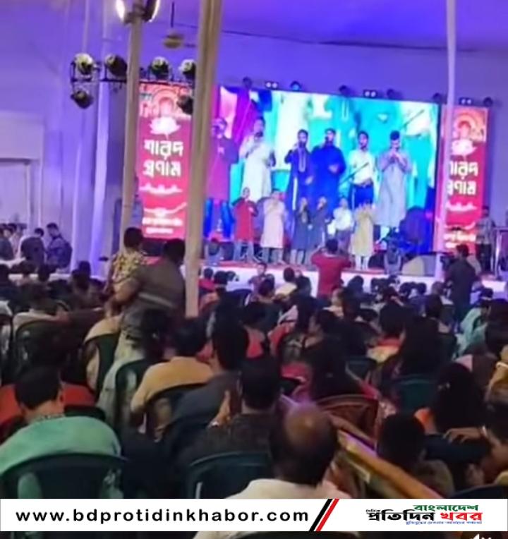 খোঁজ নিয়ে জানা যায়, বৃহস্পতিবার উপস্থাপক ও পূজা উদযাপন কমিটির যুগ্ম সম্পাদক সজল দত্ত চট্টগ্রাম কালচারাল একাডেমির সদস্যদের মঞ্চে ডাকেন। মঞ্চে ওঠেন ৬-৭ জন তরুণ। তাঁরা সেখানে দুটি গান পরিবেশন করেন।