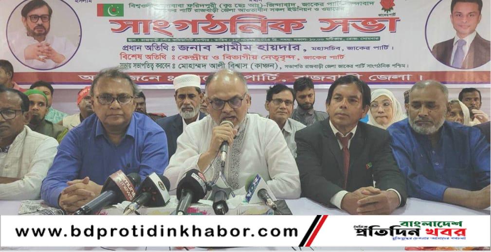 রাজবাড়ীতে জাকের পার্টির ইউনিয়ন ও ওয়ার্ডের সাংগঠনিক সভা অনুষ্ঠিত হয়েছে। উক্ত অনুষ্ঠানে জাকের পার্টির মহাসচিব শামীম হায়দার বলেছেন, আগামী জাতীয় সংসদ নির্বাচনে ৩০০ আসনে প্রার্থী দিতে প্রস্তুতি ও সামর্থ্য রয়েছে জাকের পার্টির। পরিবেশ-পরিস্থিতি দেখে নির্বাচনে অংশগ্রহণের ব্যাপারে সিদ্ধান্ত নেওয়া হবে।