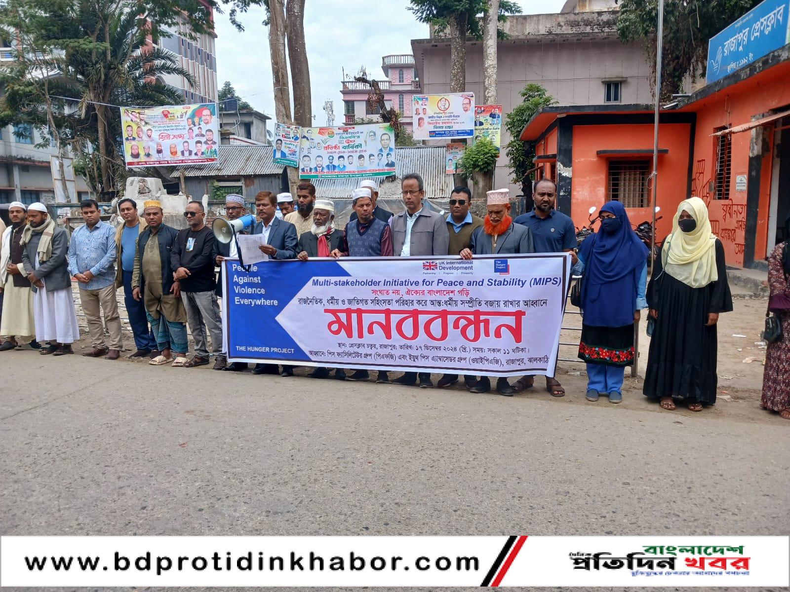 সংঘাত নয়-ঐক্যের বাংলাদেশ গড়ি এই শ্লোগানে মানববন্ধনে বক্তারা বলেন, সাম্প্রতিক পরিস্থিতি বিবেচনায় দেখা যাচ্ছে যে, ধর্মীয়, সামাজিক ও রাজনৈতিক বিভিন্ন ইস্যুকে কেন্দ্র করে বিভাজন তৈরির চক্রান্ত চলছে। এ ধরনের ষড়যন্ত্র আমাদের সামাজিক বন্ধন, ধর্মীয় সম্প্রীতি, স্থিতিশীলতা এবং উন্নয়ন প্রক্রিয়াকে ক্ষতিগ্রস্ত করতে পারে। বিশেষত, সাম্প্রতিক সময়ে কিছু ধর্মীয় সংগঠনের কার্যক্রম নিয়ে প্রশ্ন উঠেছে, যা আমাদের সহাবস্থানের পরিবেশকে নষ্ট করার সম্ভাবনা তৈরি করছে। এই পরিস্থিতিতে, আমাদের সকলকে ঐক্যবদ্ধ প্রচেষ্টার মাধ্যমে এসব চ্যালেঞ্জ মোকাবিলা করতে হবে। একটি শান্তিপূর্ণ, সমৃদ্ধ ও গণতান্ত্রিক বাংলাদেশ গড়ে তোলার আহ্বান জানায়।