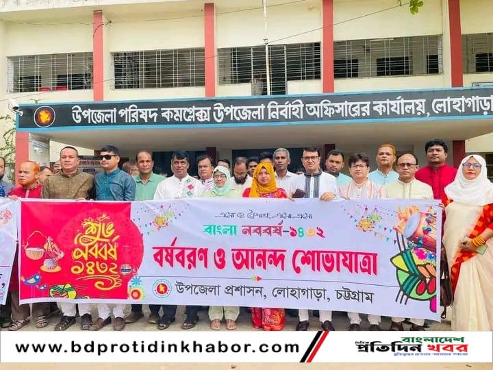 পহেলা বৈশাখ উপলক্ষ্যে চট্টগ্রামের লোহাগাড়ায় নানা আয়োজনে বর্ষবরণ ও আনন্দ শোভাযাত্রা অনুষ্ঠিত হয়েছে। সোমবার (১৪ এপ্রিল) সকাল সাড়ে ৯টায় উপজেলা পরিষদের অফিসার্স ক্লাব প্রাঙ্গণ থেকে আনন্দ শোভাযাত্রার র্যালি শুরু হয়ে উপজেলা পরিষদ সংলগ্ন চট্টগ্রাম- কক্সবাজার মহাসড়ক প্রদক্ষিণ করে অনুষ্ঠানস্থল এসে শেষ হয়।আনন্দ শোভাযাত্রার নেতৃত্ব দেন লোহাগাড়া উপজেলা নির্বাহী অফিসার(ইউএনও) মুহাম্মদ ইনামুল হাছান।শোভাযাত্রায় উপজেলা প্রশাসনের কর্মকর্তা- কর্মচারীগণ, স্কুল- কলেজের শিক্ষক-শিক্ষার্থী, সাংবাদিকবৃন্দ, স্কাউটস শিশু- কিশোরসহ নানা শ্রেণি-পেশার মানুষ অংশগ্রহণ করেন।