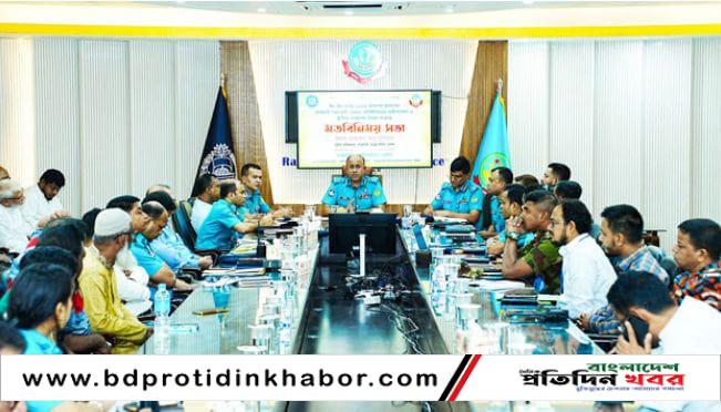 (১৩ মে ২০২৫) সকাল ১১টায় আরএমপি সদর দপ্তরে অনুষ্ঠিত সভায় সভাপতিত্ব করেন আরএমপি কমিশনার মোহাম্মদ আবু সুফিয়ান। এতে ইজারাদার, ব্যবসায়ী প্রতিনিধি, বাজার কমিটি, পরিবহণ সংগঠন ও বিভিন্ন আইনশৃঙ্খলা সংস্থার প্রতিনিধিরা অংশ নেন।