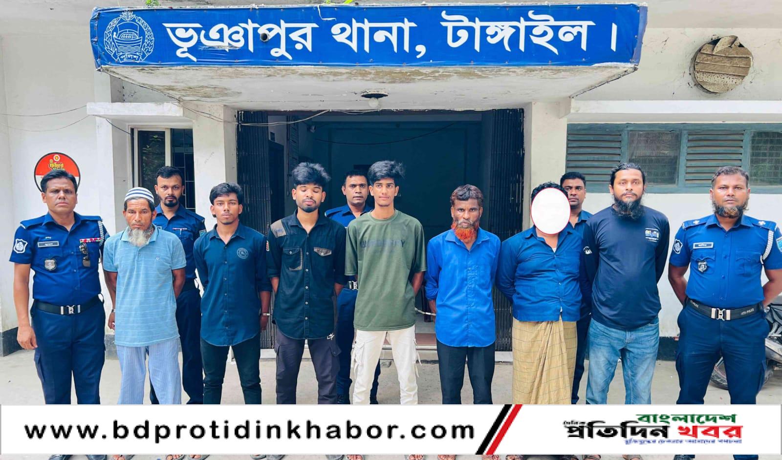 অন্যদিকে গ্রেফতারকৃতরা হলেন, ভূঞাপুরের বাহাদীপুর গ্রামের মৃত তুলার ছেলে ইলিয়াস জামান (৪০), ঘাটাইলের আথাইল শিমুল গ্রামের মৃত আহম্মদ আলীর ছেলে আজগর বাকা(৪০) ও তার ছেলে সজিব (২১), মৃত মোহাম্মদ আলীর ছেলে ছামাদ (৪০), ছামাদের ছেলে ইকন (২০) ও মফিজের ছেলে রহিম (২০)।