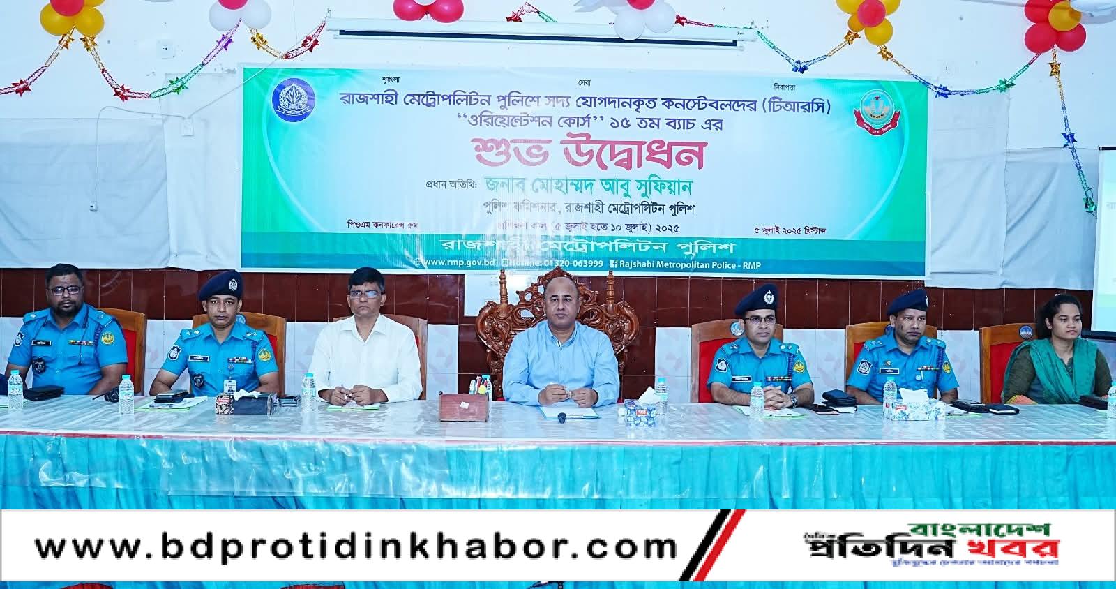 জি.আর.রওনক,রাজশাহী:আজ ৫ জুলাই ২০২৫ খ্রিস্টাব্দ সকাল ৯.৩০ টায় আরএমপি পুলিশ ট্রেনিং স্কুলের আয়োজনে পুলিশ লাইন্স পিওএম কনফারেন্স রুমে রাজশাহী মেট্রোপলিটন পুলিশের মাননীয় পুলিশ কমিশনার জনাব মোহাম্মদ আবু সুফিয়ান মহোদয় সদ্য যোগদানকৃত কনস্টেবলদের ওরিয়েন্টেশন কোর্সের ১৫তম ব্যাচের আনুষ্ঠানিক উদ্বোধন করেন।
