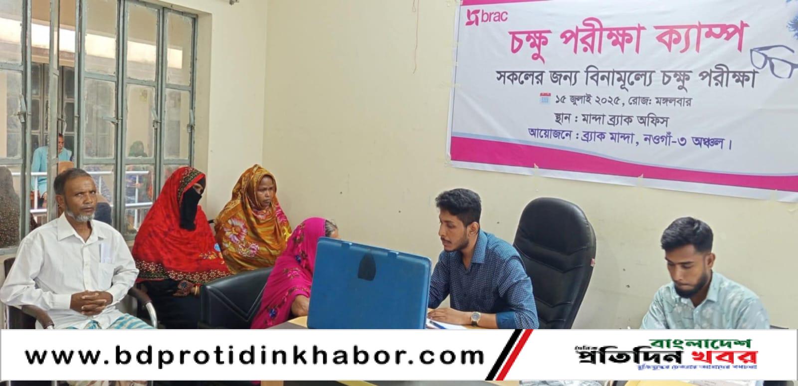 নওগাঁর মান্দায় ব্র্যাকের উদ্যোগে এক দিনের বিনামূল্যে চক্ষু চিকিৎসা ক্যাম্প অনুষ্ঠিত হয়েছে। আজ মঙ্গলবার সকাল ১০টার দিকে উপজেলার বিজয়পুরস্থ ব্র্যাক কার্যালয়ে এই চিকিৎসা ক্যাম্পের উদ্বোধন করা হয়।