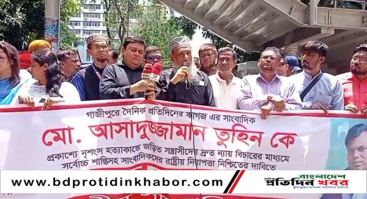 গাজীপুরে নির্মমভাবে খুন হয়েছেন দৈনিক প্রতিদিন পত্রিকার সাংবাদিক আসাদুজ্জামান তুহিন (৩৮)। গত ৭ আগস্ট, বৃহস্পতিবার রাত ৮টার দিকে গাজীপুরের চান্দিনা চৌরাস্তায় মসজিদ মার্কেটের সামনে তাকে সন্ত্রাসীরা প্রকাশ্যে কুপিয়ে ও গলা কেটে হত্যা করে। এ বর্বরোচিত ঘটনায় দেশজুড়ে সাংবাদিক মহলে নিন্দার ঝড় উঠেছে।