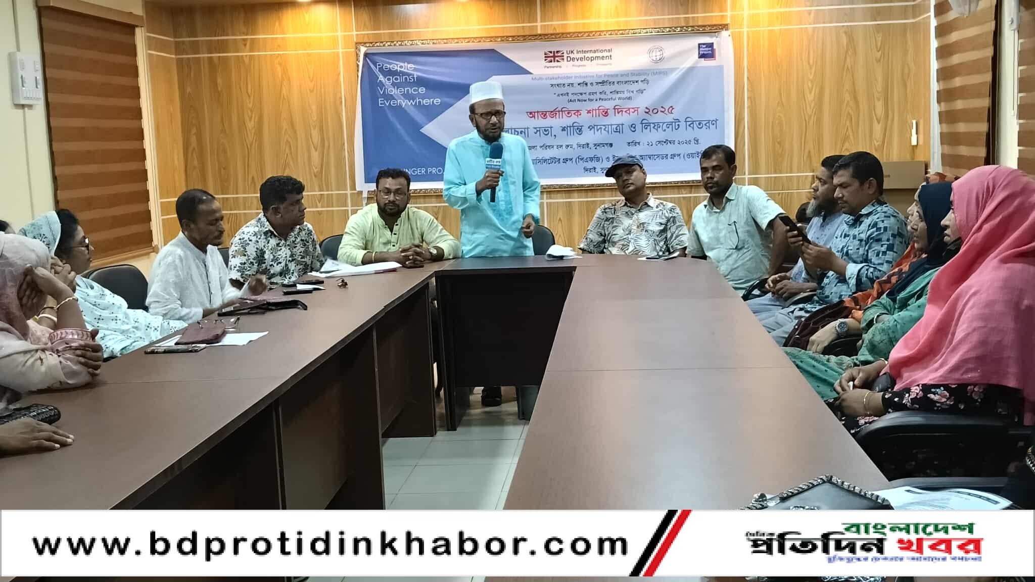 “এখনই পদক্ষেপ গ্রহণ করি, শান্তিময় বিশ্ব গড়ি” এই প্রতিপাদ্যকে সামনে রেখে আন্তর্জাতিক শান্তি দিবস ২০২৫ উপলক্ষে সুনামগঞ্জের দিরাইয়ে দিনব্যাপী বর্ণিল আয়োজন অনুষ্ঠিত হয়েছে। রোববার (২১ সেপ্টেম্বর) দিরাই পিএফজি ও ওয়াইপিএজির উদ্যোগে এই আয়োজনের মধ্যে ছিলো আলোচনা সভা, শান্তি পদযাত্রা ও লিফলেট বিতরণ।