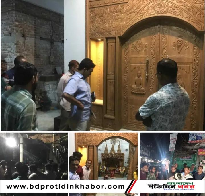 পরিদর্শনে স্পষ্টভাবে প্রমাণিত হয় যে ভিডিওটির সাথে বাস্তবের কোনো মিল নেই। সরেজমিন তদন্তে পাওয়া তথ্যঃ-দাবিকৃত মন্দিরের মেঝেতে কোনো টাইলস নেই, অথচ ভিডিওতে টাইলস দেখা যায়। শুধুমাত্র দ্বিতীয় তলার একটি ছোট কক্ষে ভিন্ন ধরনের কিছু টাইলস আছে, যা ভিডিওর টাইলসের সাথে মিল নয়। ভিডিওতে দুর্গাপ্রতিমা দেখা গেলেও উক্ত মন্দিরে এখনও দুর্গাপূজার কোনো প্রতিমা স্থাপন করা হয়নি। শুধু একটি স্থায়ী কালী প্রতিমা রয়েছে, যা ভিডিওর অস্থায়ী প্রতিমার সাথে সাদৃশ্যপূর্ণ নয়। অনুসন্ধানে আরও জানা যায়, হাটহাজারী থানার অধীন এলাকায় এমন কোনো মন্দিরই নেই, যেটি ভিডিওর সাথে মিলে যায়।অতএব, ভাইরাল ভিডিওটি সম্পূর্ণ মিথ্যা, ভিত্তিহীন ও অসৎ উদ্দেশ্যে প্রচারিত। সকলকে অনুরোধ করা হচ্ছে—কোনো ধরনের গুজবে কান না দেওয়া এবং উসকানিমূলক কর্মকাণ্ডে সম্পৃক্ত না হওয়ার জন্য। চট্টগ্রাম জেলা পুলিশ সাইবার জগৎ ও মাঠ পর্যায়ে সর্বদা সতর্ক রয়েছে এবং এ ধরনের বিভ্রান্তিকর প্রচারণা সনাক্ত করে আইনানুগ ব্যবস্থা গ্রহণ করা হচ্ছে।