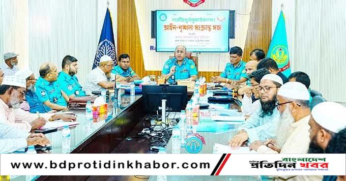 রাজশাহী মেট্রোপলিটন পুলিশের সদর দপ্তরের সম্মেলন কক্ষে আসন্ন শারদীয় দুর্গাপূজা-২০২৫ উপলক্ষ্যে আইন-শৃঙ্খলা বিষয়ক মতবিনিময় সভা অনুষ্ঠিত হয়। সোমবার বিকেললে সভায় পূজা উদ্যাপন কমিটির নেতৃবৃন্দ, বিভিন্ন রাজনৈতিক দলের প্রতিনিধি এবং ধর্মীয় সংগঠনের নেতৃবৃন্দ অংশগ্রহণ করেন।