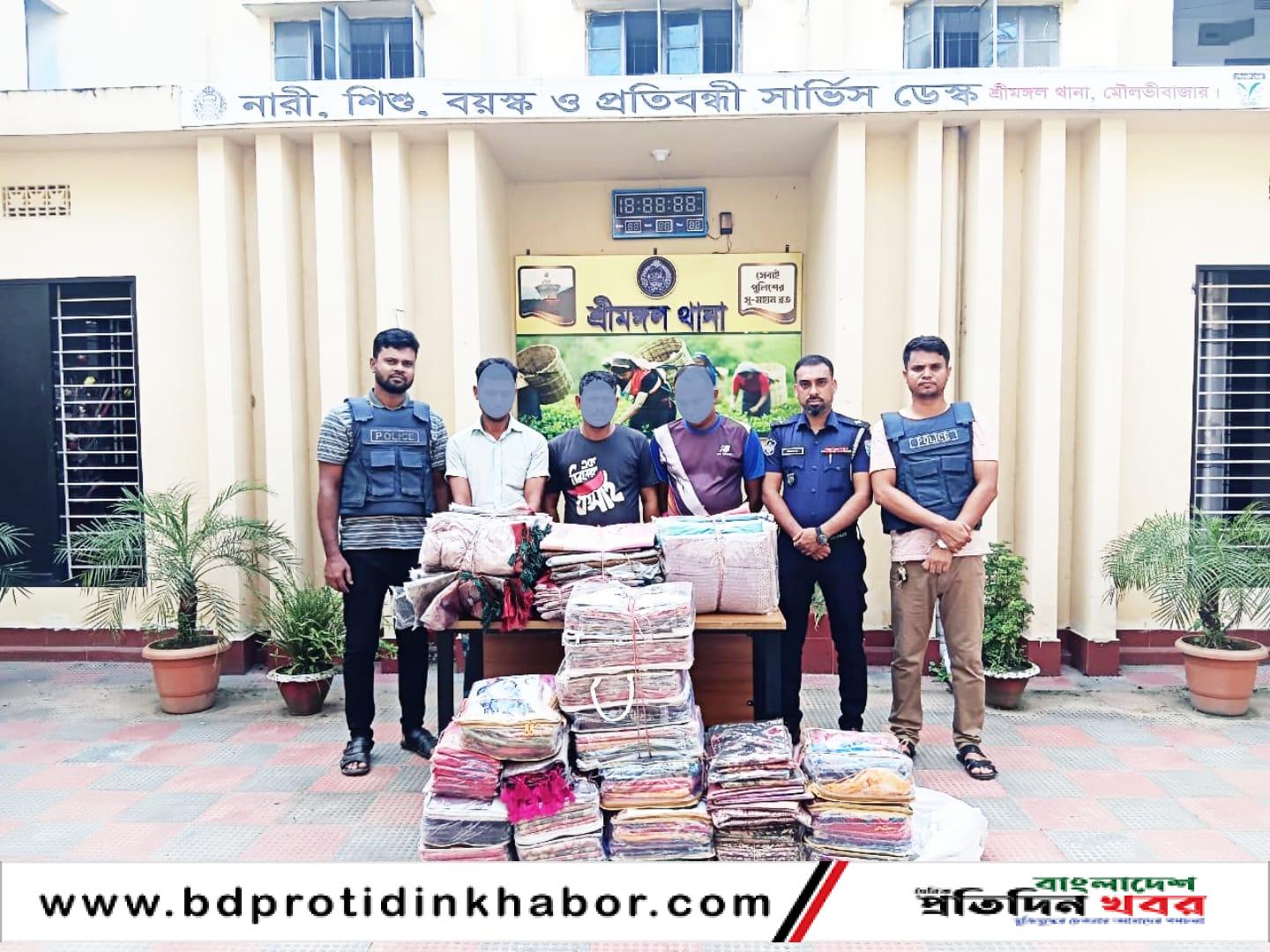শ্রীমঙ্গল থানার অফিসার ইনচার্জ (ওসি) মো. আমিনুল ইসলাম জানান, গ্রেপ্তারকৃতরা অবৈধ ভাবে আমদানি করা ভারতীয় শাড়ীর চালান নিয়ে বিক্রয় করার উদ্দেশ্যে শ্রীমঙ্গলের দিকে আসছিল। জব্দ করা শাড়ীর মূল্য প্রায় ২ লক্ষাধিক টাকা। আসামিদের বিরুদ্ধে শ্রীমঙ্গল থানায় মামলা দায়েরের পর মৌলভীবাজার জেলা বিজ্ঞ আদালতের মাধ্যমে কারাগারে প্রেরণ করা হয়েছে।