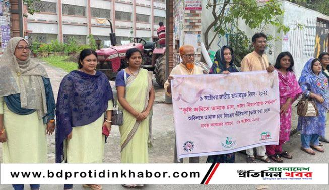 কৃষি জমিতে তামাক চাষ, খাদ্য নিরাপত্তায় সর্বনাশ” স্লোগানে জাতীয় তামাকমুক্ত দিবস ২০২৫ উপলক্ষে বাংলাদেশ তামাক বিরোধী জোট (বাটা) এর সদস্য সংগঠন বেসরকারী উন্নয়ন ও মানবাধিকার সংস্থা লেডিস অর্গানাইজেশন ফর সোসাল ওয়েলফেয়ার লফস এর আয়োজনে এবং এইড ফাউন্ডেশন এর সহযোগিতায় আজ ৯ অক্টোবর, সকাল ১১টাই নগরীরর মিয়াপারাস্থ বরেন্দ্র কলজের সামনে জাতীয় তামাকমুক্ত দিবস ২০২৫ উপলক্ষে মানববন্ধন অনুষ্ঠিত হয়।