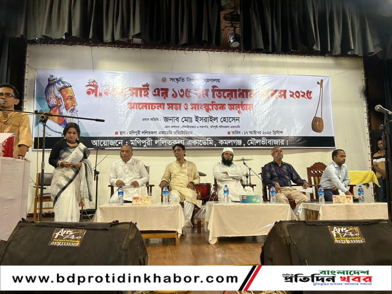 মৌলভীবাজারের কমলগঞ্জে মণিপুরী ললিতকলা একাডেমির উদ্যোগে লালন সাঁইয়ের ১৩৫তম তিরোধান দিবস উপলক্ষে আলোচনা সভা ও সাংস্কৃতিক অনুষ্ঠান অনুষ্ঠিত হয়েছে। একই অনুষ্ঠানে ‘তারুণ্যের উৎসব ২০২৫’-এর অংশ হিসেবে মণিপুরী তাঁতবস্ত্র বুনন প্রশিক্ষণ কর্মসূচিরও উদ্বোধন করা হয়।