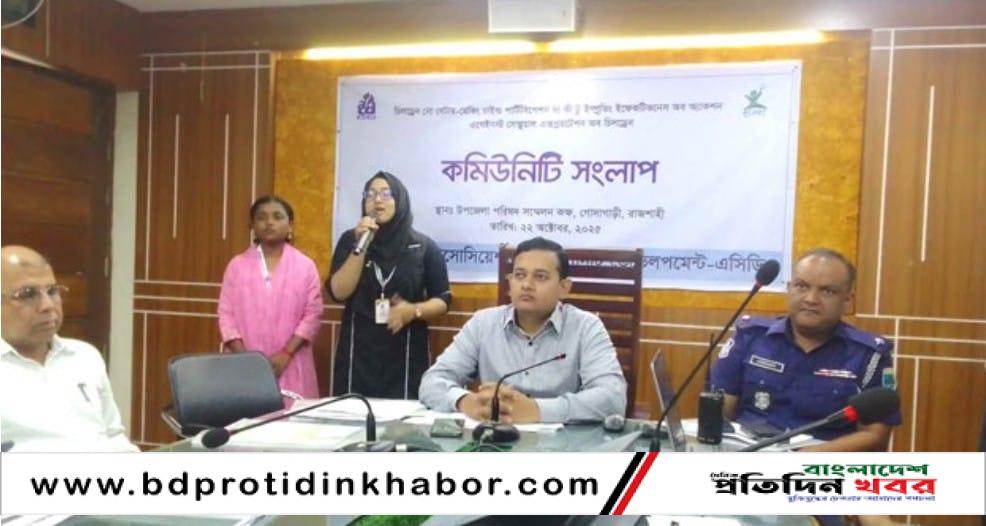 রাজশাহীর গোদাগাড়ী উপজেলায় শিশু সুরক্ষা বিষয়ক কমিউনিটি সংলাপ অনুষ্ঠিত হয়েছে। বুধবার (২২ অক্টোবর) সকাল সাড়ে ১০টার দিকে উপজেলা পরিষদ সম্মেলন কক্ষে এ সংলাপের আয়োজন করে উন্নয়ন সংস্থা এসিডি (ACD)। সহযোগিতা করে চিলড্রেন নো বেটার (Children Know Better) প্রকল্প।