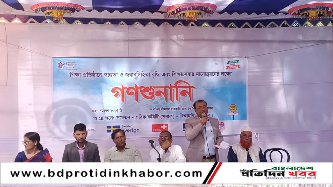 বৃহস্পতিবার সকালে পশ্চিম শ্রীমঙ্গল সরকারি প্রাথমিক বিদ্যালয় মাঠে ট্রান্সপারেন্সি ইন্টারন্যাশনাল বাংলাদেশ (টিআইবি)-এর প্রেরণা ভিত্তিক সচেতন নাগরিক কমিটি (সনাক), শ্রীমঙ্গলের আয়োজনে এ গণশুনানি অনুষ্ঠিত হয়।