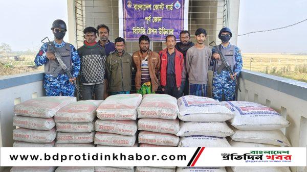 মায়ানমারে পাচারকালে বিপুল পরিমাণ সিমেন্ট ও ময়দাসহ ৭ পাচারকারীকে আটক করেছে কোস্ট গার্ড