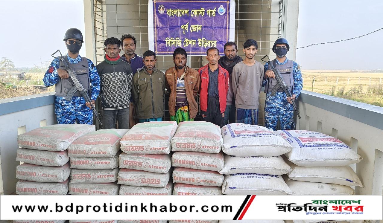 মায়ানমারে পাচারকালে বিপুল পরিমাণ সিমেন্ট ও ময়দাসহ ৭ পাচারকারীকে আটক করেছে কোস্ট গার্ড।