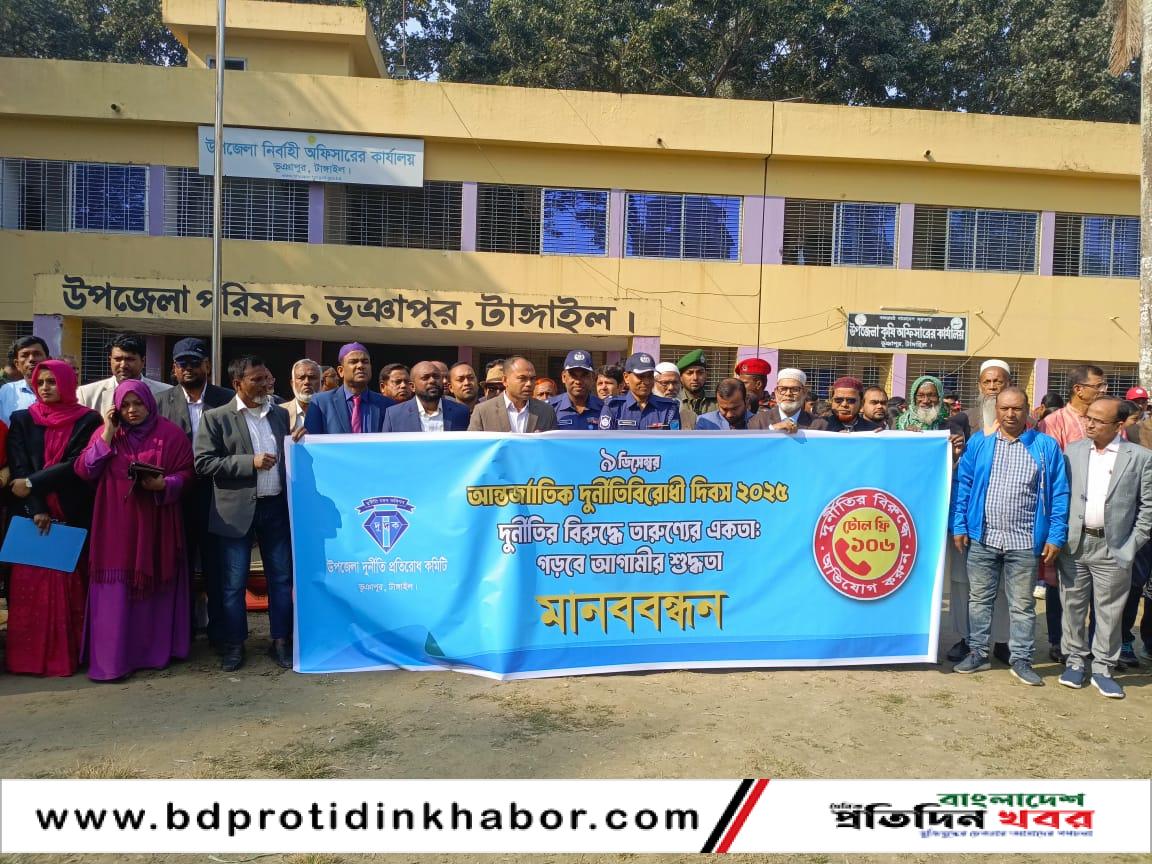 দুর্নীতির বিরুদ্ধে তারুণ্যের একতা; গড়বে আগামীর শুদ্ধতা’ এ স্লোগানকে সামনে রেখে টাঙ্গাইলের ভূঞাপুরে আন্তর্জাতিক দুর্নীতি বিরোধী দিবস পালিত হয়েছে।