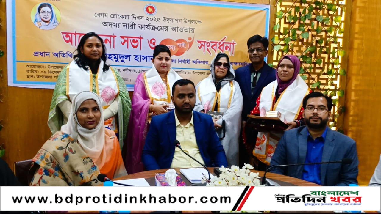 বেগম রোকেয়া দিবস ২০২৫ উপলক্ষে নারীর ক্ষমতায়ন, সংগ্রাম ও সাফল্যের স্বীকৃতিস্বরূপ ব্রাহ্মণবাড়িয়ার নবীনগরে ৪ নারীকে ‘অদম্য নারী’ সম্মাননা প্রদান করা হয়েছে।