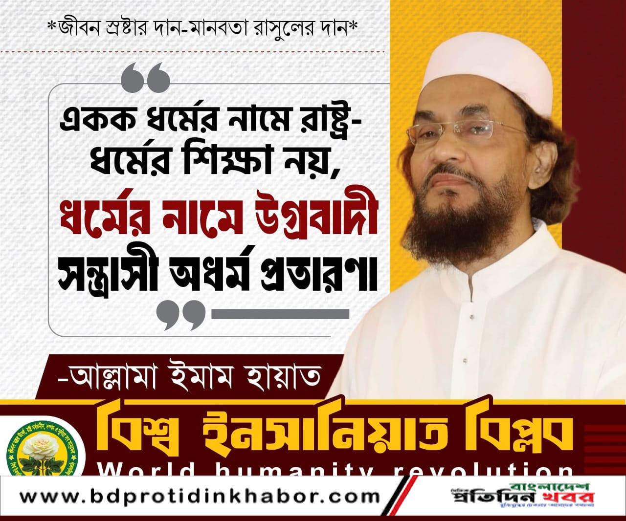 আল্লামা ইমাম হায়াত বলেন, একক গোষ্ঠীর স্বৈরদস্যুতামুক্ত অসাম্প্রদায়িক সর্বজনীন মানবতার রাষ্ট্র ই সব ধর্মের সব মত পথের সব মানুষের জীবন অধিকার নিরাপত্তা স্বাধীনতা সুনিশ্চিত করার একমাত্র উপায়।