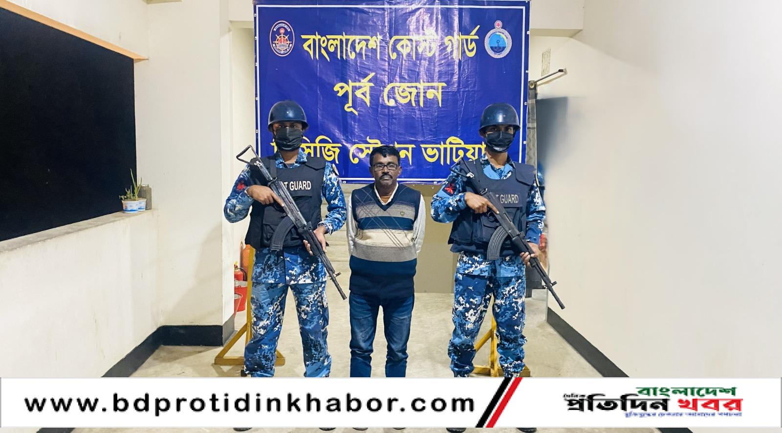 কোস্ট গার্ড সূত্র জানায়, রোববার (২১ ডিসেম্বর ২০২৫) রাত ৮টার দিকে গোপন সংবাদের ভিত্তিতে কোস্ট গার্ড স্টেশন ভাটিয়ারী চট্টগ্রামের সীতাকুন্ড থানাধীন বড়কুমিরার সোনারপাড়া পিএইচপি গেট সংলগ্ন এলাকায় একটি বিশেষ অভিযান পরিচালনা করে। অভিযানে মোঃ রফিক (৫৮) নামে এক ব্যক্তিকে আটক করা হয়।