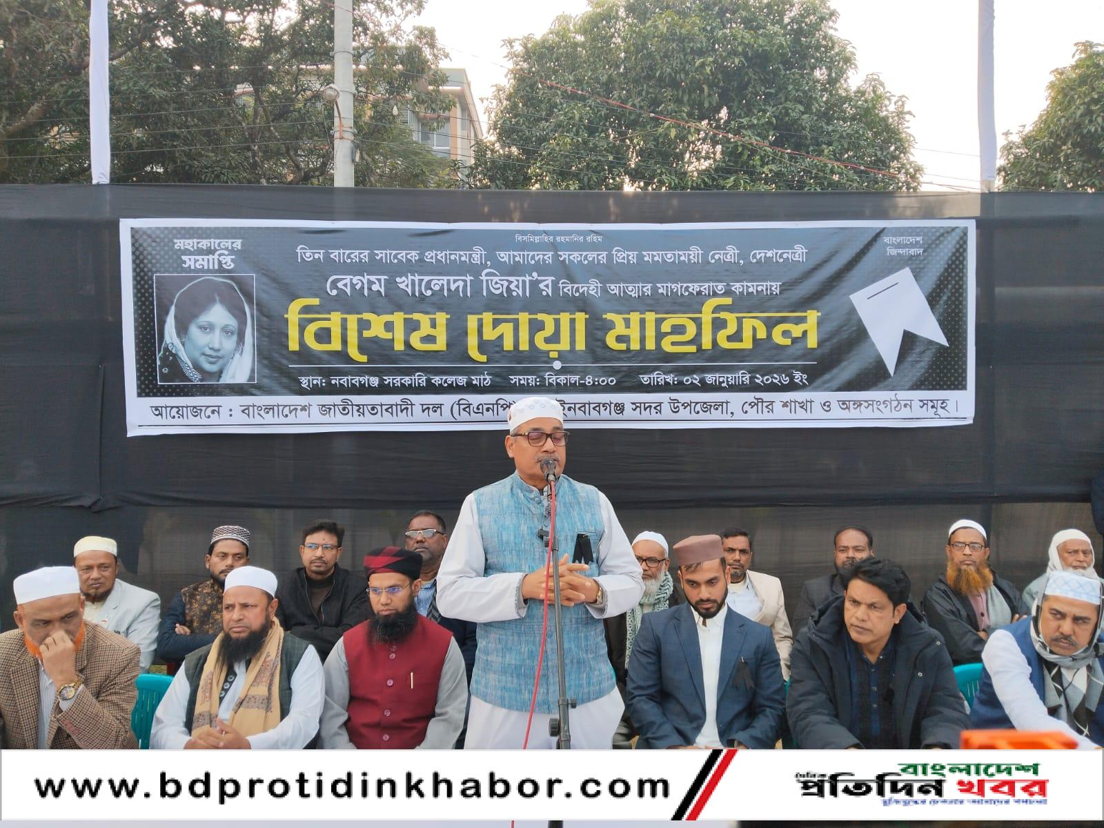 শুক্রবার (২ জানুয়ারি) বিকাল ৪টায় নবাবগঞ্জ সরকারি কলেজ মাঠ প্রাঙ্গণে এ দোয়া মাহফিল অনুষ্ঠিত হয়।