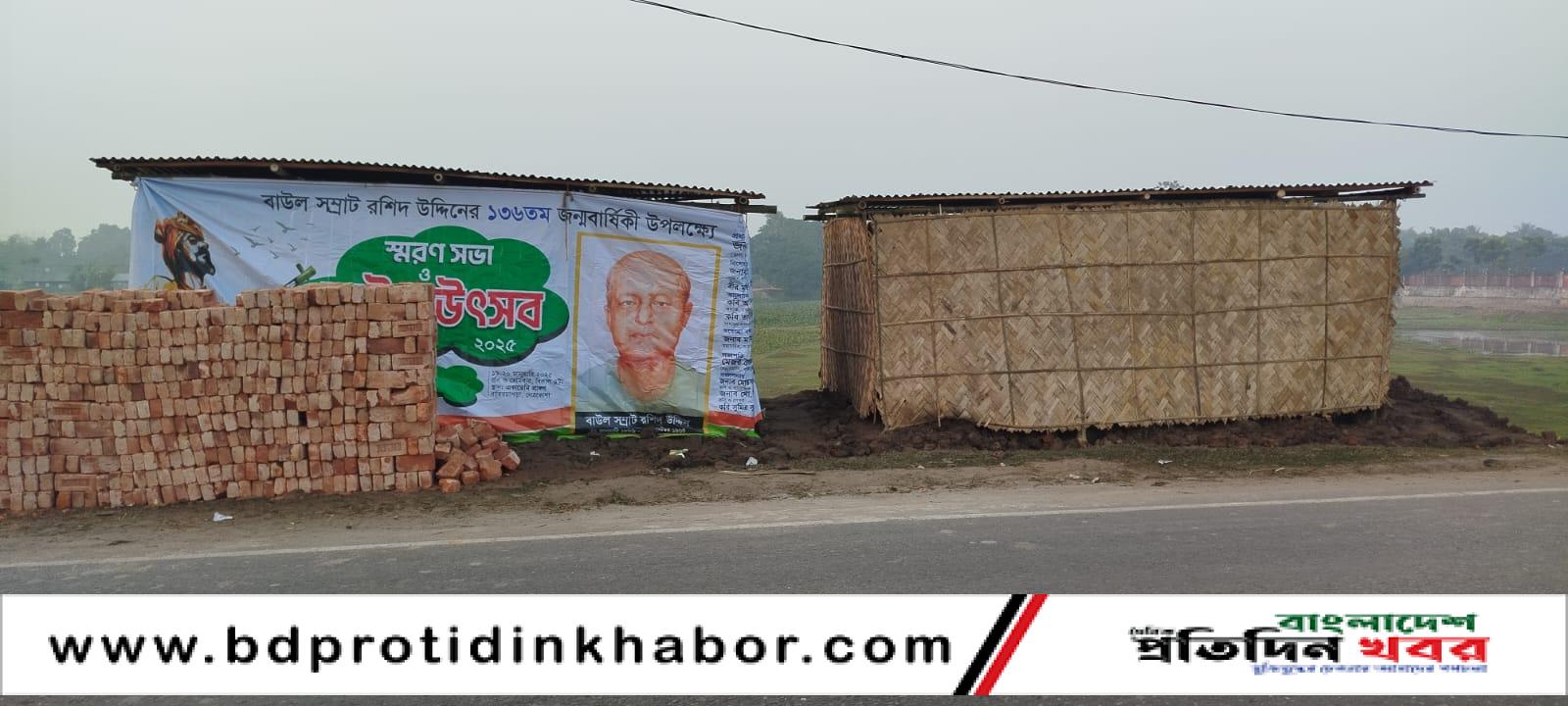 সরেজমিন দেখা গেছে, জেলা শহরের পূর্বদিকে নেত্রকোনা-মোহনগঞ্জ আঞ্চলিক মহাসড়কের পাশে সদ্য মাটি ভরাট করে দুটি ঘর তৈরি করা হয়েছে। এর একটিতে বাউল সাধক রশিদ উদ্দিনের স্মরণ সভার বিশাল ব্যানার টানানো রয়েছে। আগামী ১৯-২০ জানুয়ারি স্মরণ সভা হবে বলে ওই ব্যানারে উল্লেখ করা হয়েছে। এবিষয়ে জানতে চাইলে স্থানীয় বাবুল মিয়া ও কামরুল হাসান বলেন, কয়দিন আগেও এখানে কোন ঘর ছিলো না।