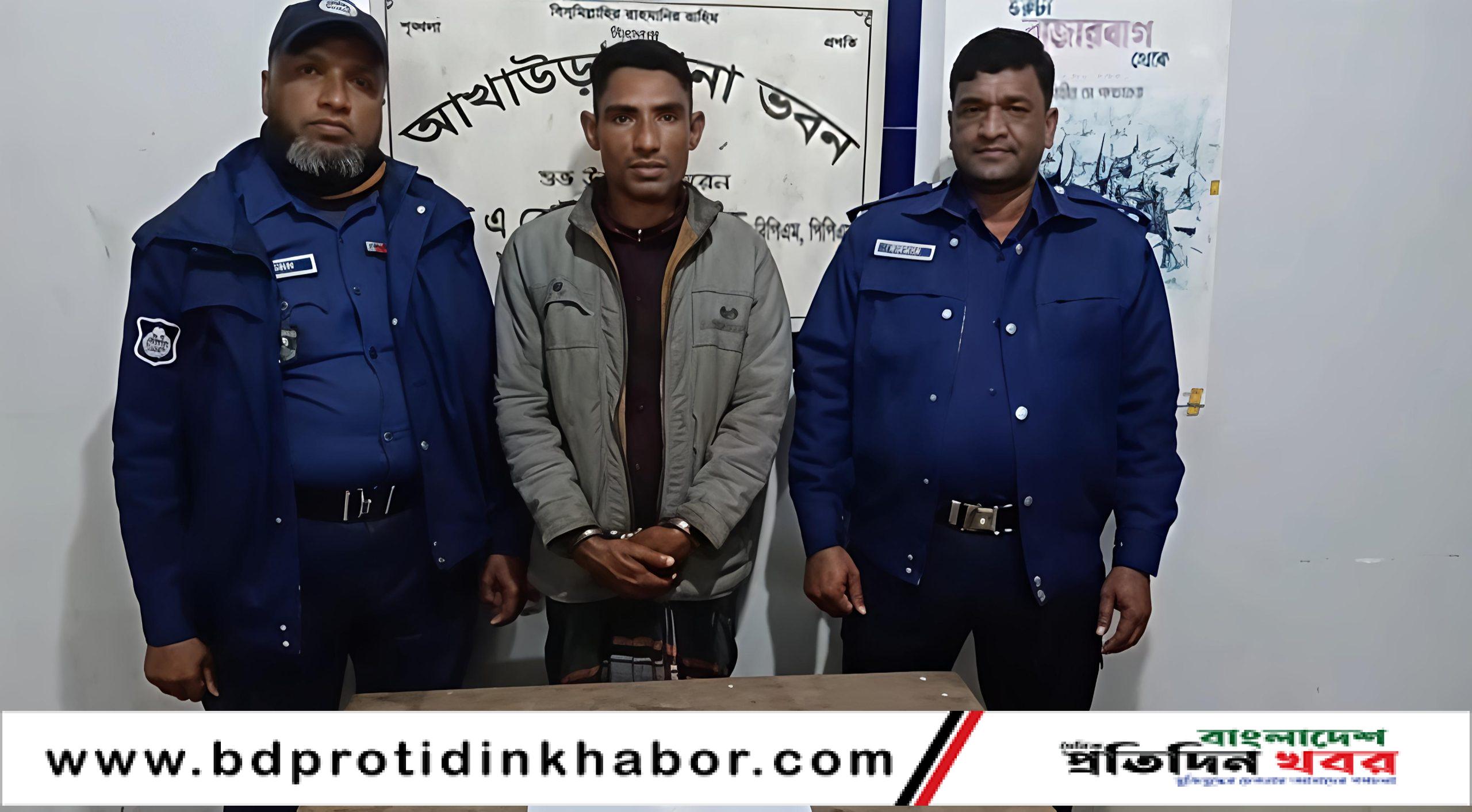 গ্রেফতারকৃত ব্যক্তি আমির হামজা (৪২)। তিনি আলাবুদ্দিনের ছেলে ও রূপচান বেগমের সন্তান। তার বাড়ি মনিয়ন্দ ইউনিয়নের মধ্যপাড়া এলাকায়।