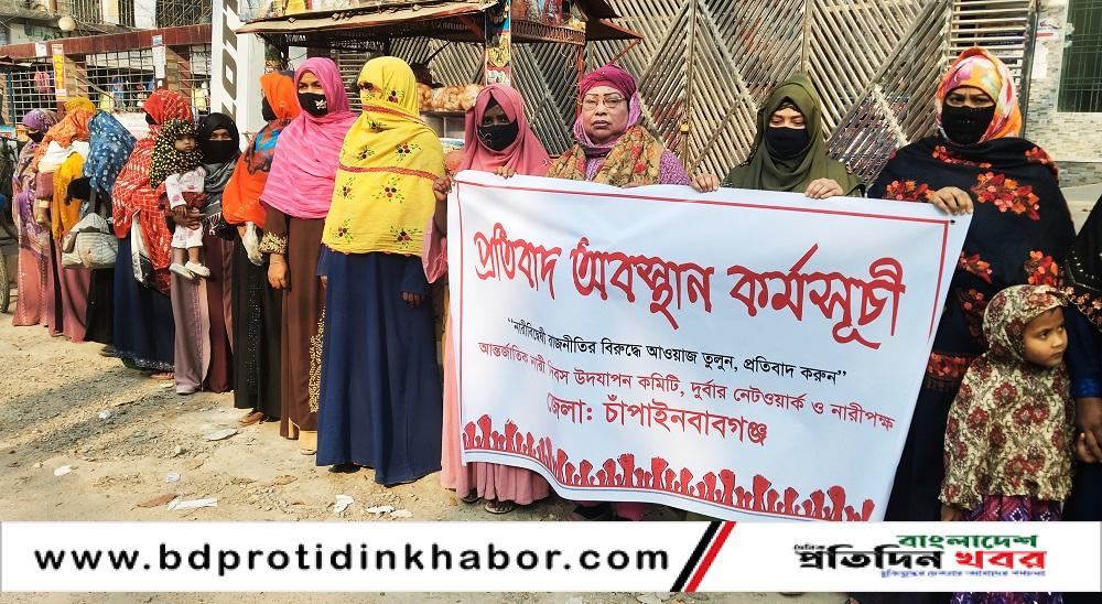 নারীবিদ্বেষী রাজনীতির বিরুদ্ধে চাঁপাইনবাবগঞ্জে প্রতিবাদ অবস্থান
