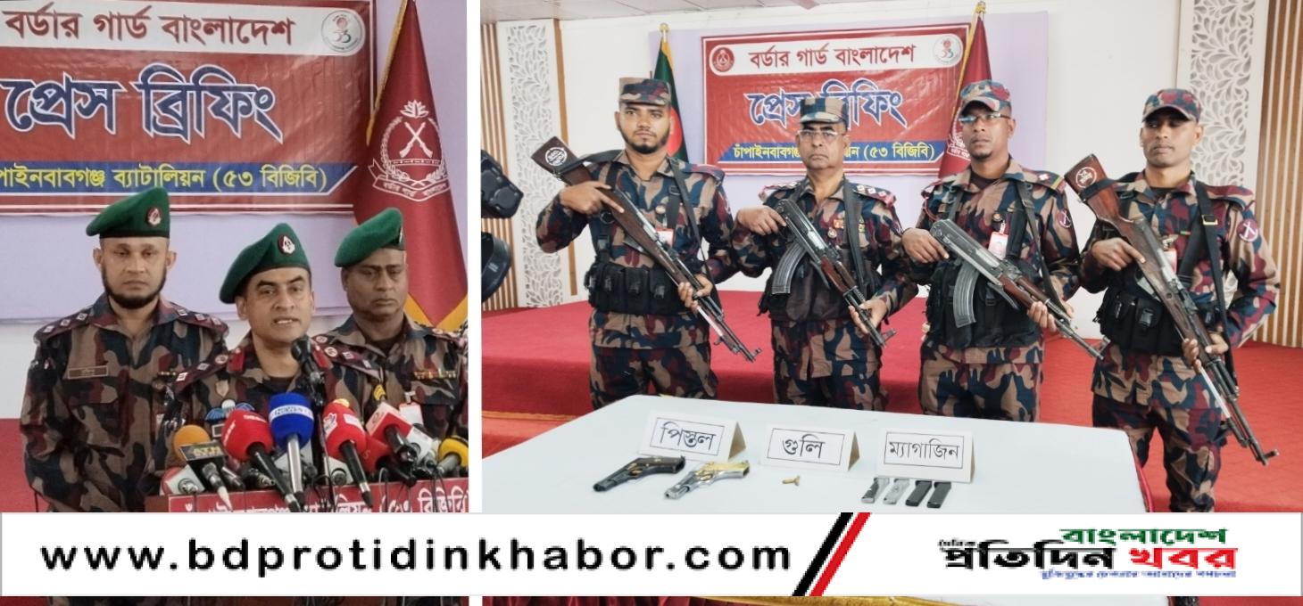 সীমান্ত থেকে প্রায় ২০০ গজ বাংলাদেশের অভ্যন্তরে পরিচালিত ওই অভিযানে ০২টি বিদেশি পিস্তল, ০৪টি ম্যাগজিন ও ০৩ রাউন্ড গুলি জব্দ করা হয়। তিনি আরও জানান, সাম্প্রতিক সময়ে সারা দেশে বর্ডার গার্ড বাংলাদেশ কর্তৃক ৩৪টি পিস্তল, ০২টি রাইফেল, ৩৮টি ম্যাগজিন, ৬৪৫ রাউন্ড গুলি, ০২টি মর্টার শেল, ০১টি ককটেল, ০৪টি হ্যান্ড গ্রেনেড, ২০ কেজি গান পাউডারসহ মোট ৫৪টি বিভিন্ন ধরনের অস্ত্র জব্দ করা হয়েছে। এর মধ্যে চাঁপাইনবাবগঞ্জ ব্যাটালিয়ন (৫৩ বিজিবি) কর্তৃক ০১ জন আসামিসহ ৯.৩ কেজি বিস্ফোরক, ০৬টি বিদেশি পিস্তল, ১৩টি ম্যাগজিন ও ২৯ রাউন্ড গুলি জব্দ করা হয়েছে। বিজিবি জানায়, আসন্ন জাতীয় সংসদ নির্বাচন ও গণভোটকে কেন্দ্র করে দুষ্কৃতকারীরা যাতে বাংলাদেশের অভ্যন্তরে বড় ধরনের নাশকতার পরিস্থিতি সৃষ্টি করতে না পারে, সে লক্ষ্যে সীমান্ত দিয়ে অবৈধ অস্ত্র ও গোলাবারুদ চোরাচালান রোধে বিজিবি সর্বদা সতর্ক ও তৎপর রয়েছে। এ বিষয়ে চাঁপাইনবাবগঞ্জ ব্যাটালিয়ন (৫৩ বিজিবি) এর অধিনায়ক লেফটেন্যান্ট কর্নেল কাজী মুস্তাফিজুর রহমান, পিএসসি, ঘটনার সত্যতা নিশ্চিত করে বলেন, “ব্যাটালিয়নের দায়িত্বপূর্ণ এলাকায় সীমান্ত সুরক্ষা নিশ্চিতকরণসহ সব ধরনের চোরাচালান ও অবৈধ কার্যক্রম প্রতিরোধে বিজিবি সর্বদা পেশাদারিত্বের সঙ্গে দায়িত্ব পালন করে যাচ্ছে। আসন্ন ত্রয়োদশ জাতীয় সংসদ নির্বাচন ও গণভোট-২০২৬ উপলক্ষে সীমান্ত এলাকায় টহল ও গোয়েন্দা নজরদারি আরও জোরদার করা হয়েছে।
