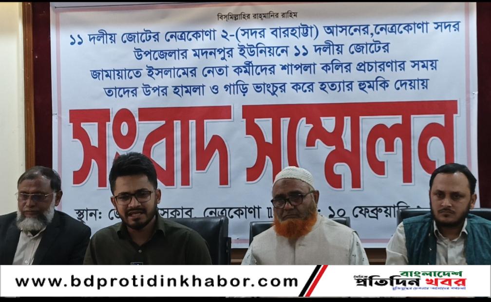 নেত্রকোণা-২ (সদর-বারহাট্টা) আসনের সদর উপজেলার মদনপুর ইউনিয়নে ১১ দলীয় জোটের প্রার্থী ও জামায়াতে ইসলামীর নেতাকর্মীদের ওপর বর্বরোচিত হামলা এবং নির্বাচনি প্রচারণার গাড়ি ভাঙচুরের ঘটনা ঘটেছে। ১১ দলীয় জোটের প্রার্থী মো: ফাহিম রহমান খান পাঠান এই ন্যাক্কারজনক ঘটনার প্রতিবাদে এবং সুষ্ঠু নির্বাচনি পরিবেশ নিশ্চিত করার দাবিতে নেত্রকোনা জেলা প্রেসক্লাবে মঙ্গলবার (১০ ফেব্রুয়ারী) বিকেলে এক জরুরি সংবাদ সম্মেলন করেন।