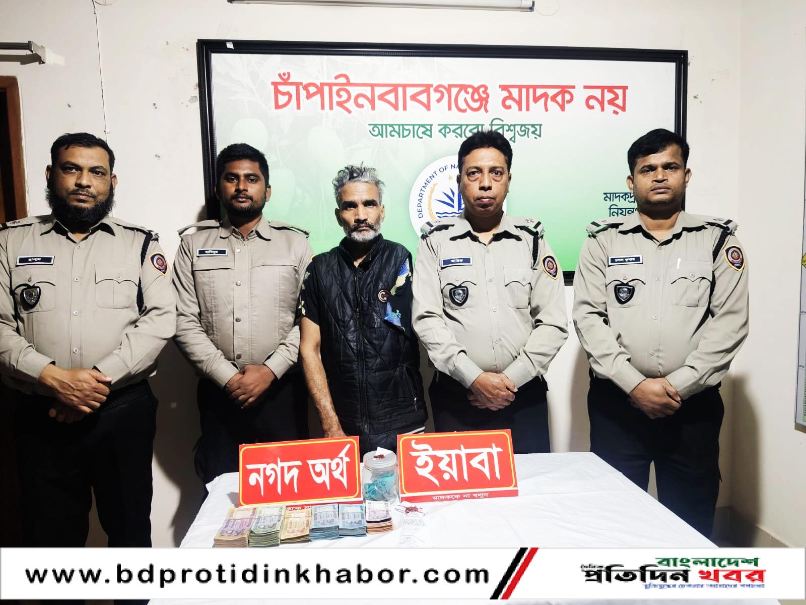 চাঁপাইনবাবগঞ্জে ডিএনসির অভিযানে বিপুল পরিমাণ ইয়াবা ও নগদ অর্থসহ আটক ০১