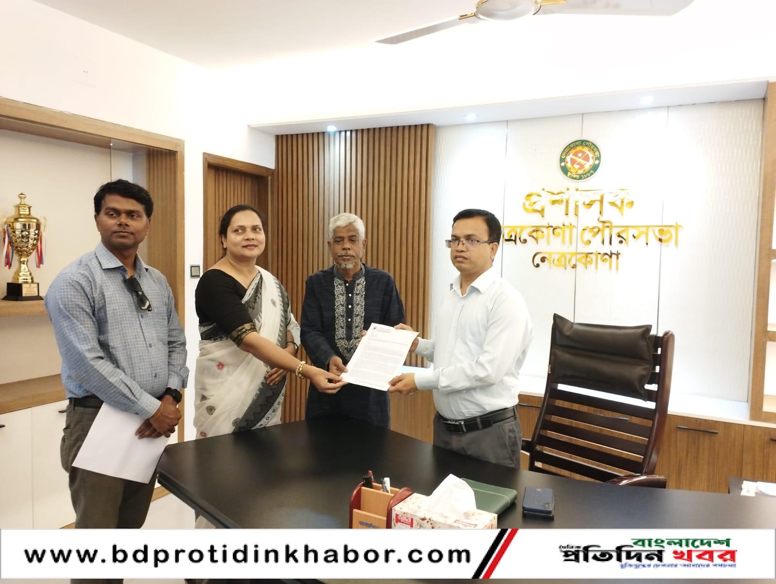 নেত্রকোনায় রুফটপ সোলার জাতীয় অগ্রাধিকারের আহ্বান জানিয়ে পৌর প্রশাসকের কাছে স্মারক লিপি প্রদান
