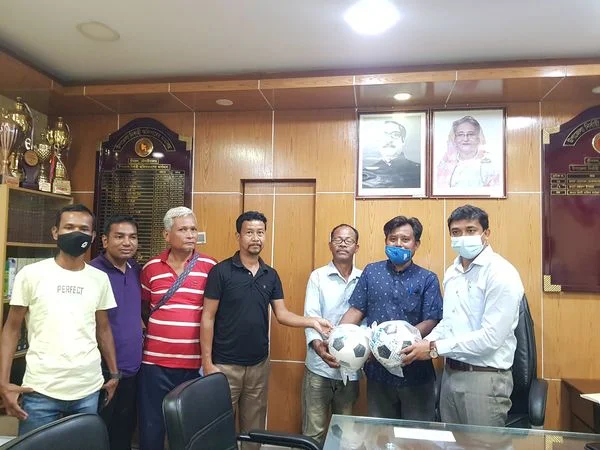 খেলাধুলায় উৎসাহে ক্ষুদ্র নৃ-গোষ্টীর যুবকদের মাঝে ফুটবল বিতরণ