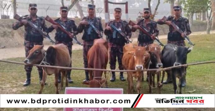 ৩৯ বর্ডার গার্ড বাংলাদেশ বিজিবি ময়মনসিংহের তাঁওয়াকোচা ও কর্ণজোড়া সীমান্ত ফাঁড়ির পৃথক দুটি চোরাচালান বিরোধী অভিযানে ১৭ টি মালিক বিহীন ভারতীয় গরু আটক করা হয়েছে। বৃহস্পতিবার সন্ধ্যায় কর্ণজোড়া বিওপির নায়েক নাজমুলের নেতৃত্বে একটি অভিযানিক দল রানী শিমুল ইউনিয়নের বিল ভরট তিন রাস্তা মোড় এলাকা থেকে মালিক বিহীন ১২ টি ভারতীয় গরু আটক করা।