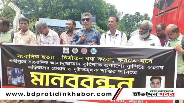 নওগাঁ প্রতিনিধিঃ গাজীপুরে সাংবাদিক আসাদুজ্জামান তুহিনকে কুপিয়ে হত্যার প্রতিবাদ ও সাংবাদিকদের পেশাগত আরো পড়ুন